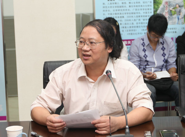 沙龙由我校文学院八桂文化与文学研究中心负责人莫道才教授主持。他首先介绍了中共中央关于推动社会主义文化大发展大繁荣决定的背景,认为在文化大发展的过程中,高校面临着前所未有的机遇,应当通过学术研究承担相应的责任。进而提出本次沙龙的主题——从文化资源摸底、文化事业政策设计、文化产业发展规划等方面探讨高校在“提升文化自觉与文化自信”中“应该做什么”、“能够做什么”。