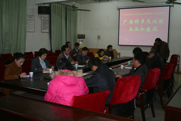 王志明副校长指出,玉林是广西的重点侨乡,玉林市政府也重视建设侨乡文化,我们的团队要有高度的责任感,以玉林为重点,充分利用地缘优势,研究广西侨乡文化。在研究过程中,要注意开阔视野,眼睛不能仅仅盯着侨乡文化,还要关注相关的领域,既要以侨乡文化作为重点,也要关注推动侨乡文化形成、发展、变化的各种因素,特别是玉林比较突出的历史与现实,比如新桂系、玉台合作、广西北部湾经济区等。