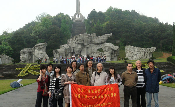 研究团队在当地县、乡、村领导陪同和带领下,首先深入漓江源头猫儿山和湘江源头海洋山进行考察。期间,团队重点走访了白石乡鳌头村、白竹村,华江乡桃子头村、同仁村、莫川乡桥头村、榜上村、长洲村。在华江乡桃子头村,团队团队成员还特别拜访了96岁老红军张华连老人。在白石乡鳌头村,团队成员参观了水源头古村落,秦家大院户主76岁的何能英老人详细讲述了秦家大院的历史渊源及该建筑的艺术特色。团队成员还到湘江战役纪念陵园参观了群雕和展览馆。