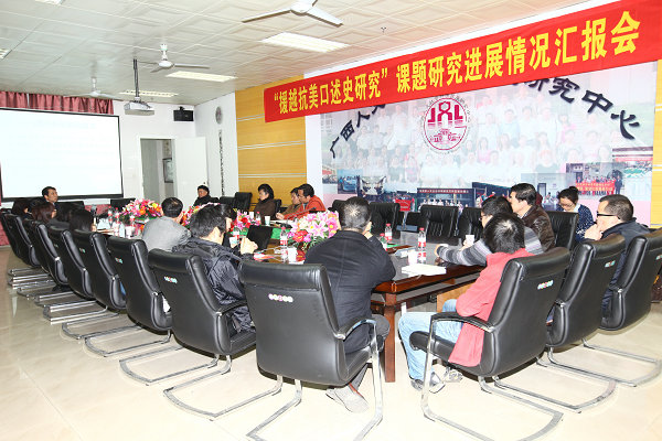2013年3月1日下午,广西文科中心第五十五期“人文强桂”系列学术沙龙在文科中心会议室举办。此次沙龙的主题是文科中心2012年度“科学研究工程”特别委托项目——“援越抗美口述史研究”课题进展情况汇报。文科中心主任林春逸教授,校国际交流处、历史文化与旅游学院、经济管理学院等单位的专家和研究生,“援越抗美”老兵等20多人参加此次沙龙。沙龙由“援越抗美口述史研究”课题负责人张坚教授主持。