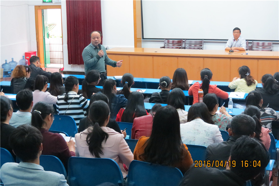 4月21日,全国教学论专业委员会副理事长、中国教育实验研究会常务理事,华东师范大学熊川武教授、博士生导师,应邀开展了《自分教学》的专题讲座。永福县教育局相关领导、项目教师及其他中小学教师代表、广西师范大学课程与教学论专业部分研究生,共计140余人聆听了讲座。熊教授深入浅出,紧扣现实,通俗生动的讲解给老师们留下深刻印象,老师们普遍感到熊教授的讲座很有启发,受益颇多。
