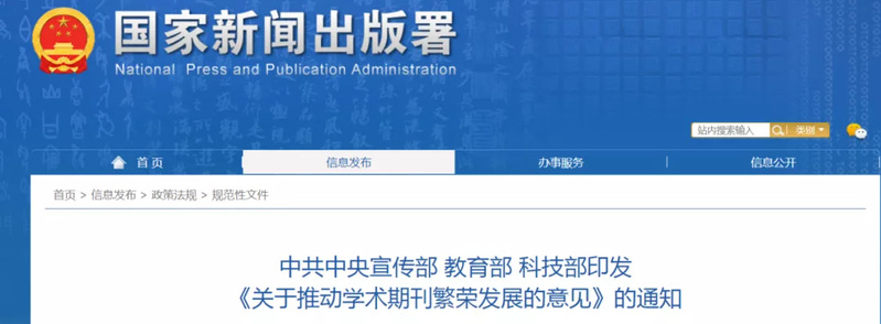 四、中共中央宣传部 教育部 科技部印发《关于推动学术期刊繁荣发展的意见》