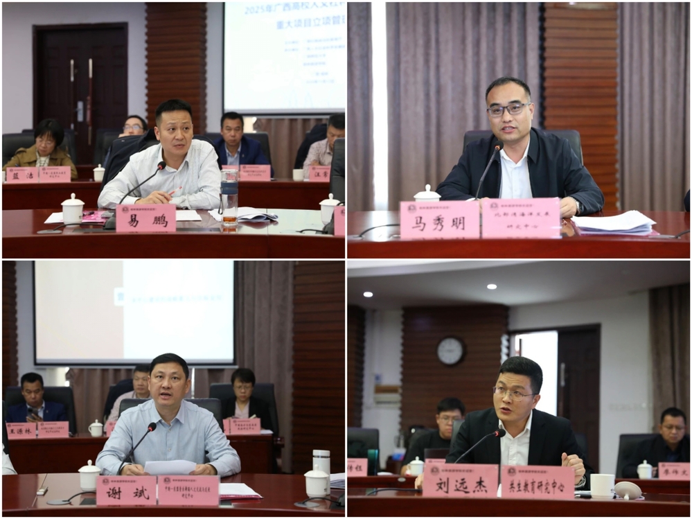 为学习宣传贯彻党的二十届四中全会精神,深刻领会、自觉贯彻《中共中央关于制定国民经济和社会发展第十五个五年规划的建议》,科学谋划新时期广西高校人文社科重点研究基地(以下简称重点研究基地)的高质量发展,强化有组织科研,进一步促进学术探索与服务国家、区域重大战略需求紧密融合,着力提升重点研究基地解决重大实践问题的综合研究能力和参与重大决策的能力,由自治区教育厅主办、广西人文社会科学发展研究中心(以下简称 “广西文科中心”)和桂林旅游学院联合承办的2025 年重点研究基地重大项目立项管理会议于2025 年11月13日在桂林旅游学院图文信息中心玉桂厅召开。