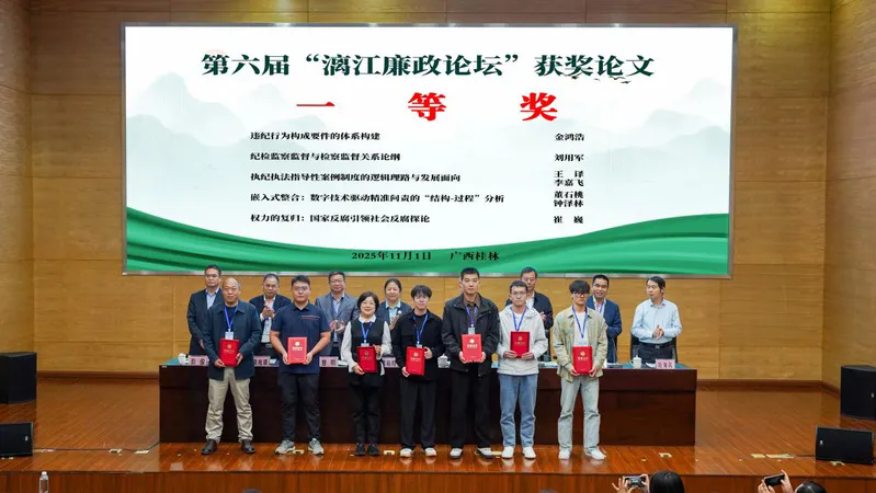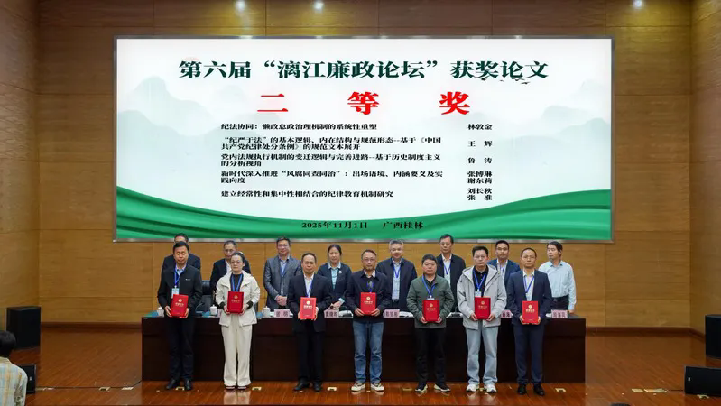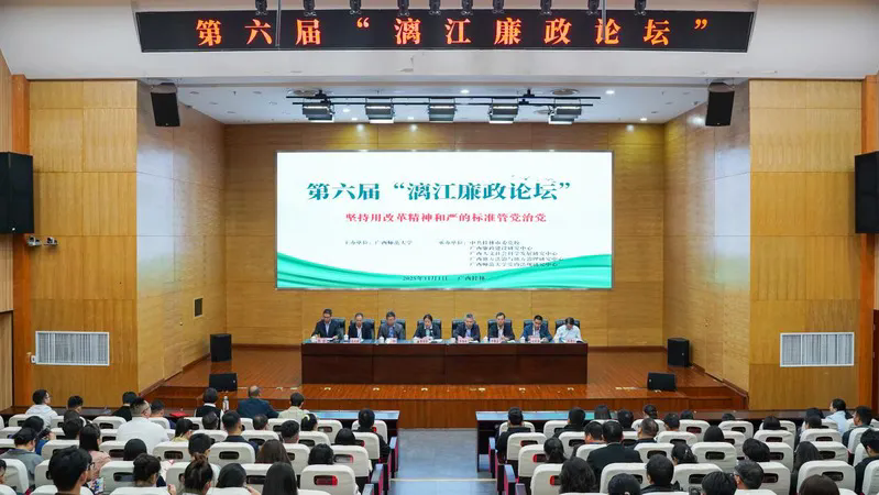 2025年11月1日,由广西师范大学主办,中共桂林市委党校、广西廉政建设研究中心、广西人文社会科学发展研究中心、广西高校人文社会科学重点研究基地—广西地方法治与地方治理研究中心、广西师范大学党内法规研究中心联合承办的第六届“漓江廉政论坛”在桂林市委党校举办。本届论坛以“坚持用改革精神和严的标准管党治党”为主题。