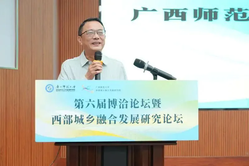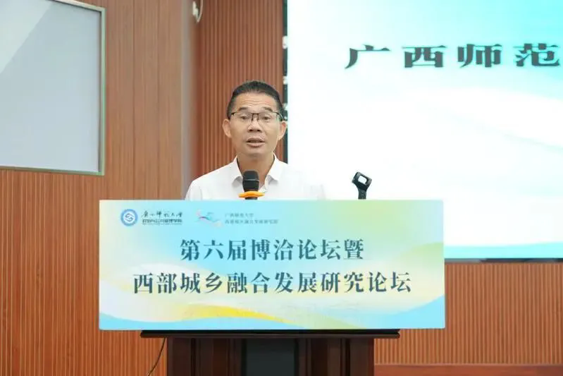 由广西师范大学政治与公共管理学院、广西高校人文社会科学重点研究基地-西部城乡融合发展研究院以及广西师范大学党委研究生工作部联合主办的第六届博洽论坛暨西部城乡融合发展研究论坛于2025年6月28日在桂林举行。论坛特邀南京大学童星教授、南开大学关信平教授、中山大学岳经纶教授、广西大学谢舜教授、广西师范大学姚贱苟教授出席。广西师范大学政治与公共管理学院院长周超教授主持开幕式。